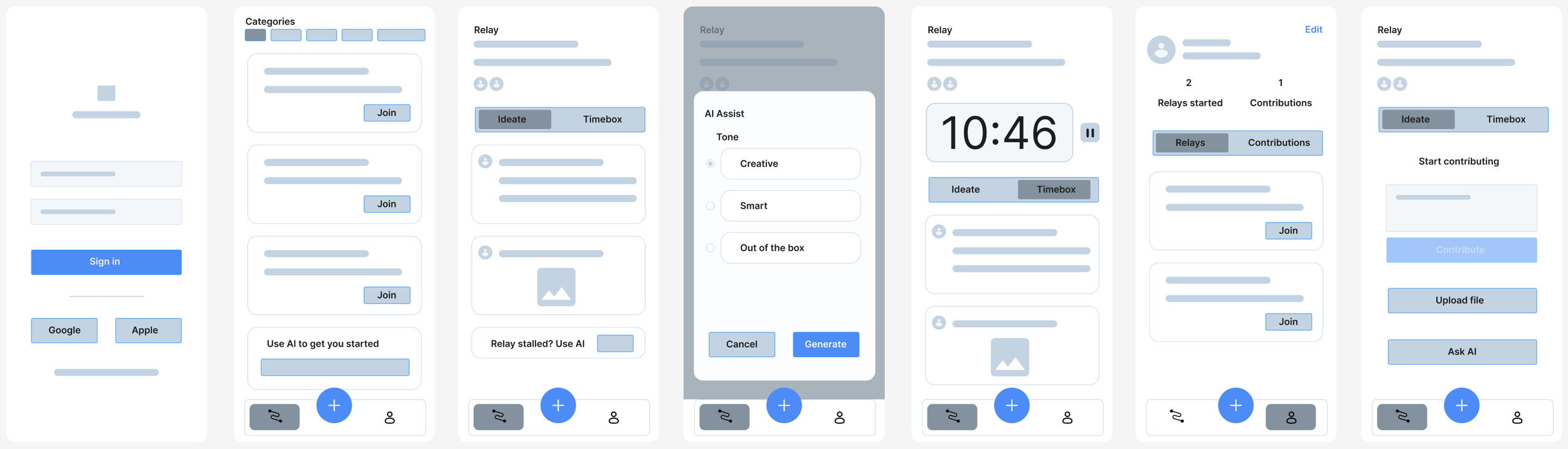 We selected relays to be our foundation as it created the most momentum and most effective evolution of ideas in a group dynamic.