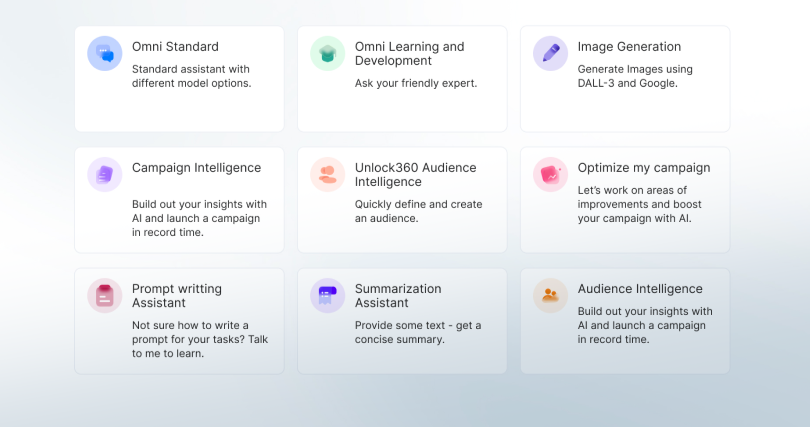 Automate Insights: Develop Omni Assist to quickly analyze large amounts of Omni Audience data and extract key insights that make audience segments unique and actionable for campaigns. This includes recommending similar or related audiences and integrating audience insights from other social, commerce, and retail media platforms.